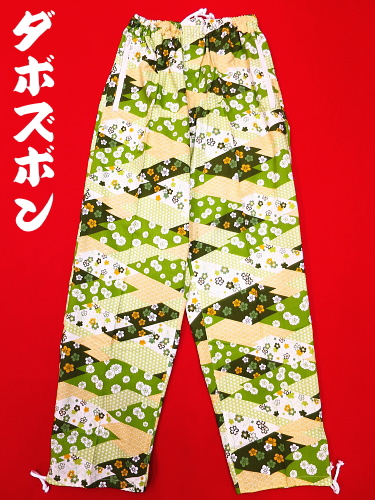 sale-205菱切りばめに小花(抹茶緑))ズボン綿100%