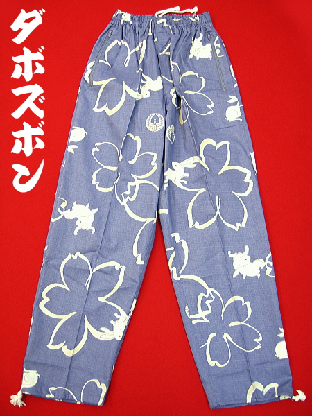 sale-235市松に桜(水色)和柄ズボン綿100%