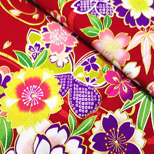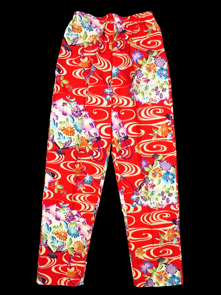 sale-203まりに花尽くし(赤)和柄ズボン綿100%
