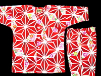 koi-029 歌舞伎市松(赤)子供鯉口シャツ上下セット 綿100%