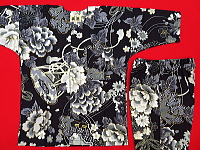 koi-042 金彩牡丹と桜(黒)子供鯉口シャツ上下セット 綿100%