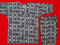koi-046 熨斗と千社札(黒)子供鯉口シャツ上下セット 綿100%