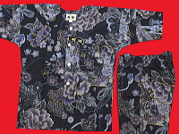 koi-079 金彩牡丹と桜(藍黒)子供鯉口シャツ上下セット 綿100%
