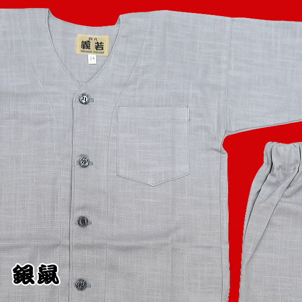 koi-219 義若のむら染め無地(銀鼠)子供鯉口シャツ上下セット 綿100%