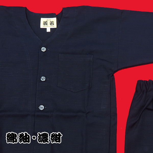 koi-350 義若の綿紬生地(濃紺)子供鯉口シャツ上下セット 綿100%