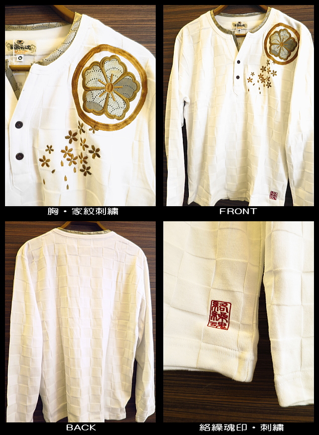 絡繰魂さんから、「家紋刺繍ヘンリー長袖Tシャツ)」のご紹介です!