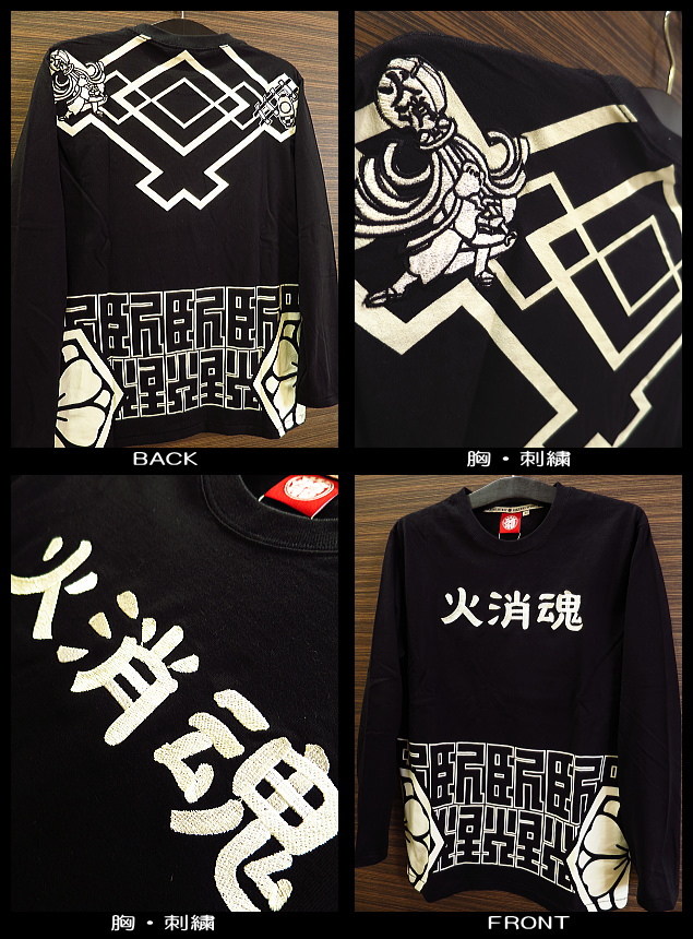 火消し魂!粋な角文字をデザインしたお洒落な長袖Tシャツ。