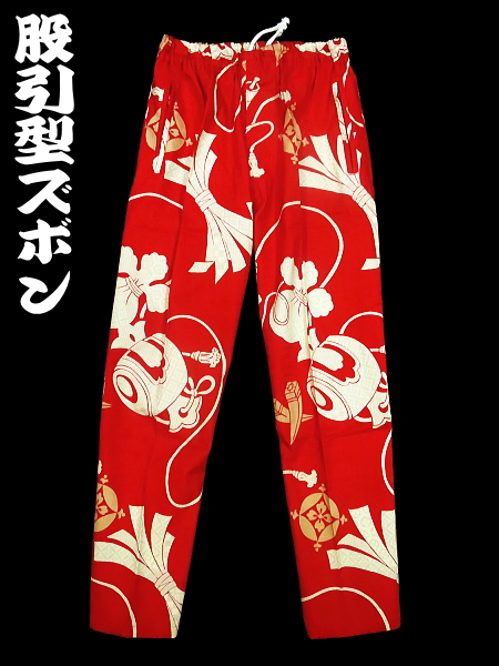 szubonn-003 宝尽くし・小槌(赤)股引き型ズボン 綿100% 義若オリジナル