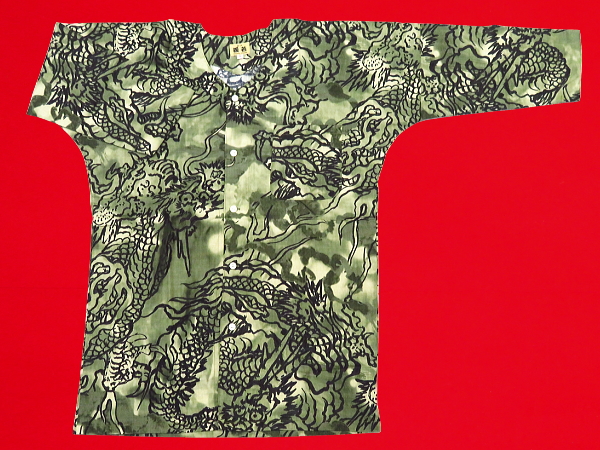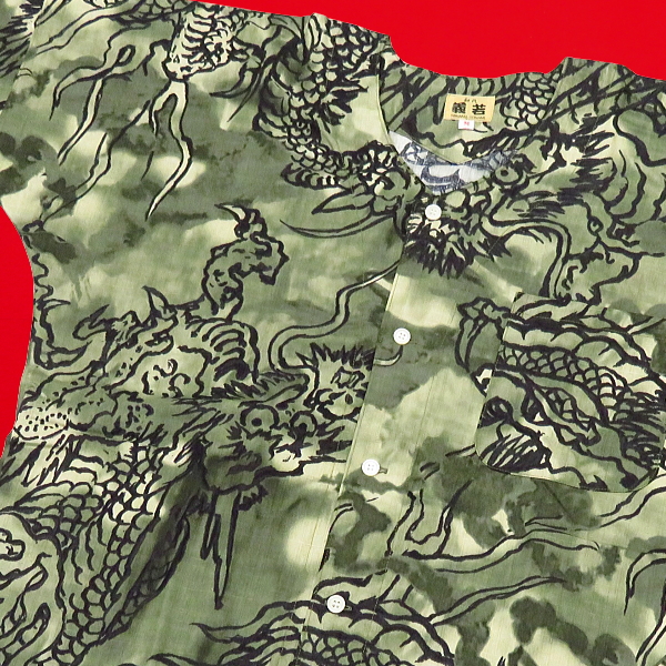 okoi-008 雲龍ぼかし(抹茶緑)鯉口シャツ(ダボシャツ) 綿100% 義若オリジナル