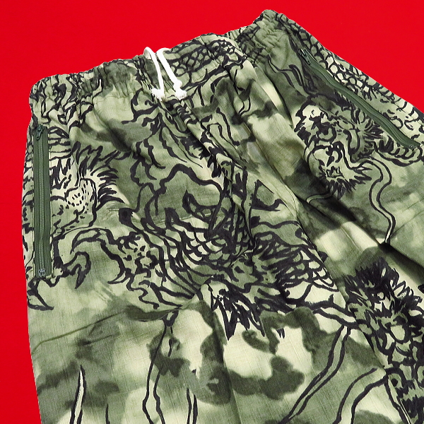 zubonn-008 雲龍ぼかし(抹茶緑)和柄ダボズボン 綿100% 義若オリジナル
