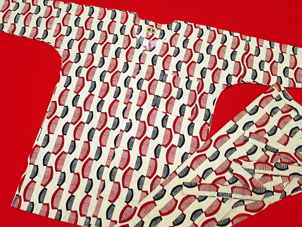 okoi-033 櫛尽くし(ベージュ)鯉口シャツ(ダボシャツ) 綿100% 義若オリジナル