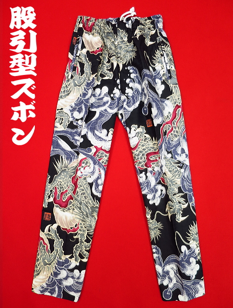 szubonn-099 大荒波に龍 (黒赤)股引き型ズボン 綿100%