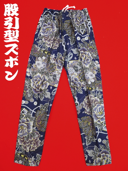 szubonn-119 金彩牡丹と桜(渋藍紺)股引き型ズボン 綿100% 義若オリジナル