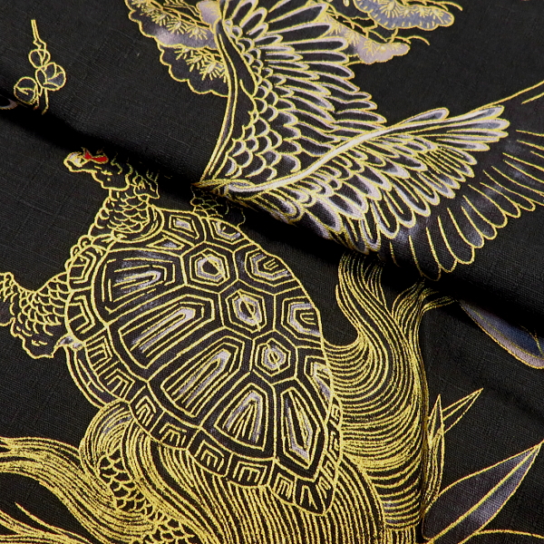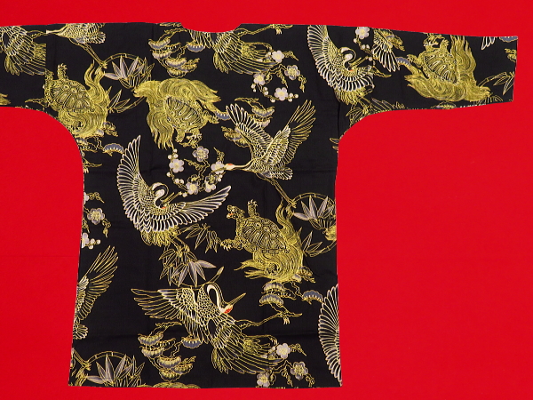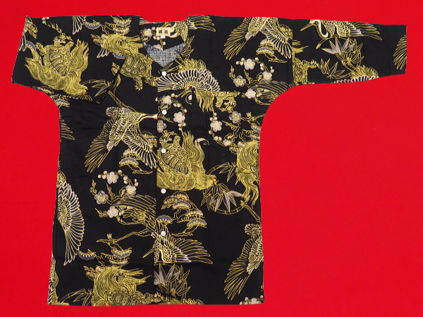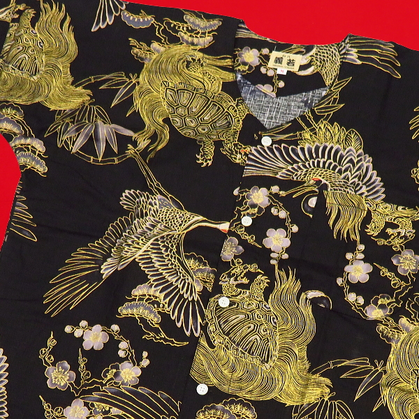 okoi-126 金彩鶴亀(黒金)鯉口シャツ(ダボシャツ) 綿100% 義若オリジナル