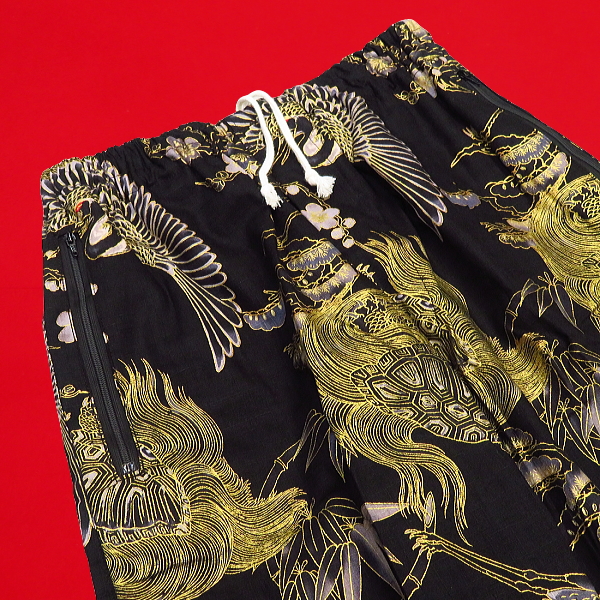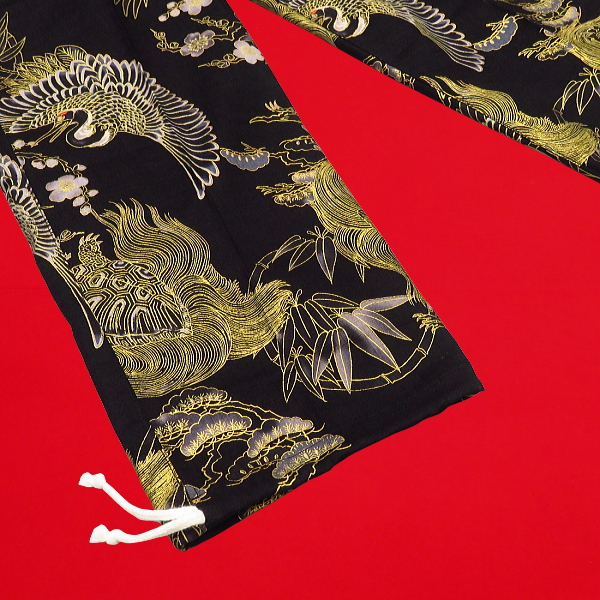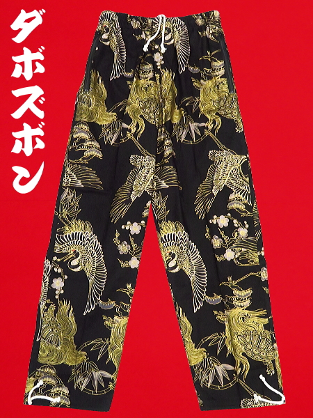 zubonn-126 金彩鶴亀(黒金)和柄ダボズボン 綿100% 義若オリジナル