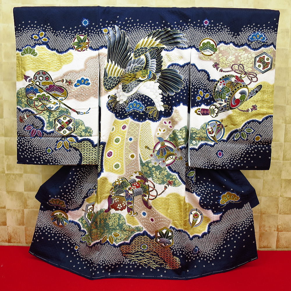 鷹に熨斗の伝統文様できっちりまとめた男の子の祝い着です。
