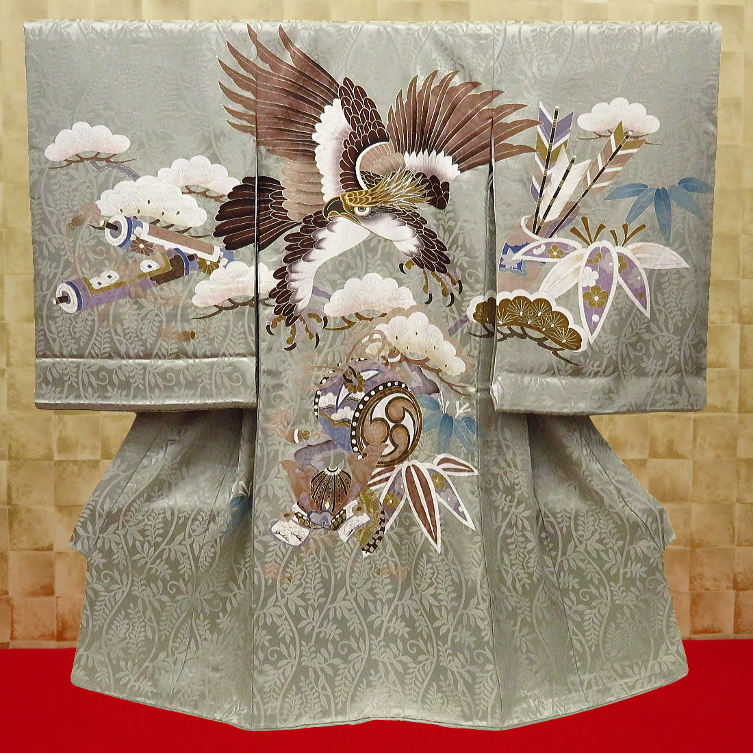 力強い鷹のモチーフは未来への希望と冒険を、松の柄は健康と長寿の願いを込めています。