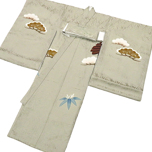 ubugi-2607 【飛翔鷹に宝尽くし・薄緑】 初着 祝着 男の子のお宮参り着物 高級フードセットプレゼント付